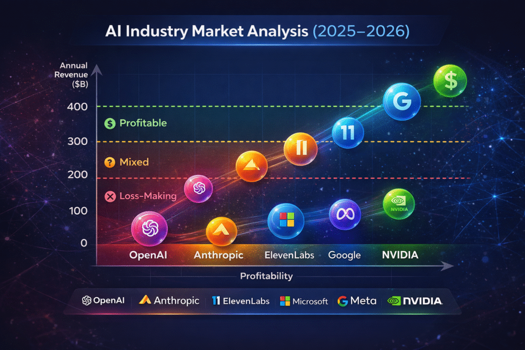 At the same time, large technology corporations integrating AI into existing businesses remain profitable overall, creating a split financial reality inside the AI industry.